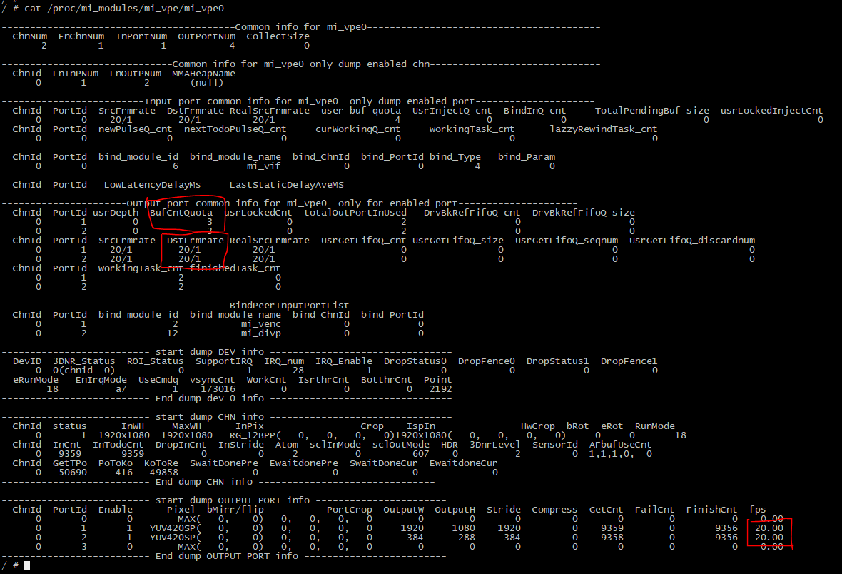 BufCntQuota:应用设置的vpe port buffer块数,如果是port 2 的fps不够,大概率是depth不够,output buffer轮循不过来。可以给port 2的depth增加1块试试。