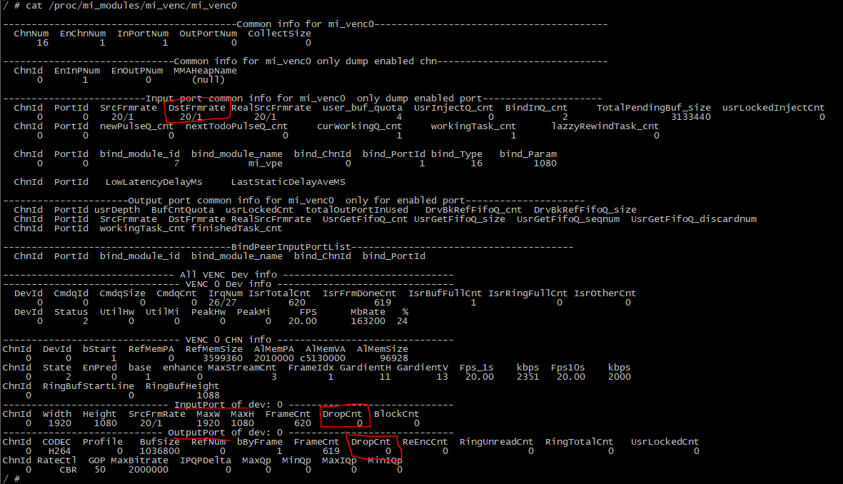 Inputport DropCnt:如果应用取流不及时,venc output buffer占满,encoder就开始drop yuv frame。因此这个值一直增加表示应用有取流不及时的行为。