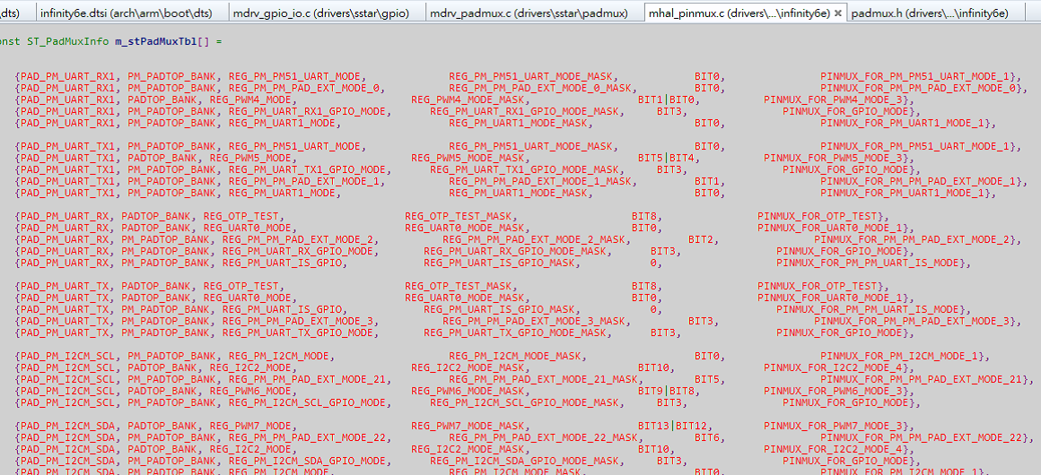 如果是qfn封装chip,则路径为kernel\arch\arm\boot\dts\infinity6e-padmux-qfn.dtsi