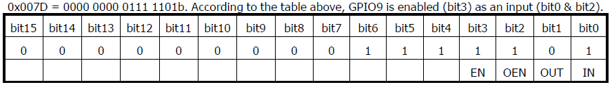 必须将地址除以2才能将其转换为riu_r可读的格式:0x12 / 2 = 0x9(bit7〜bit0)