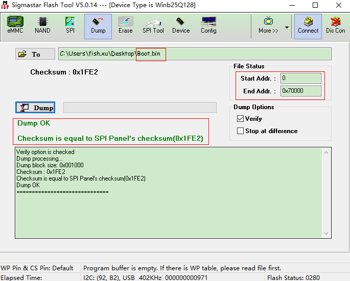 根据boot分区的大小(boot分区包含IPL.bin/IPL_CUST.bin/MXP_SF.bin/u-boot.xz.img.bin,外加env的4K分区)dump下boot分区的数据。