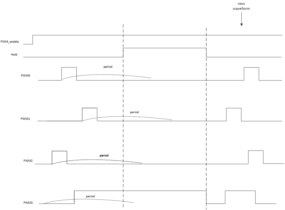 Group的Hold功能可以让加入到Group中的PWM在完成Hold命令前的周期波形之后停止。