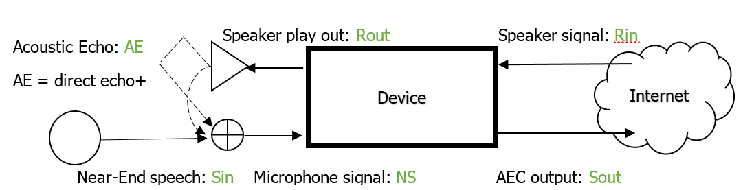 只有设备端的喇叭播放远程信号(Sin = AE + NS当 NS =0)