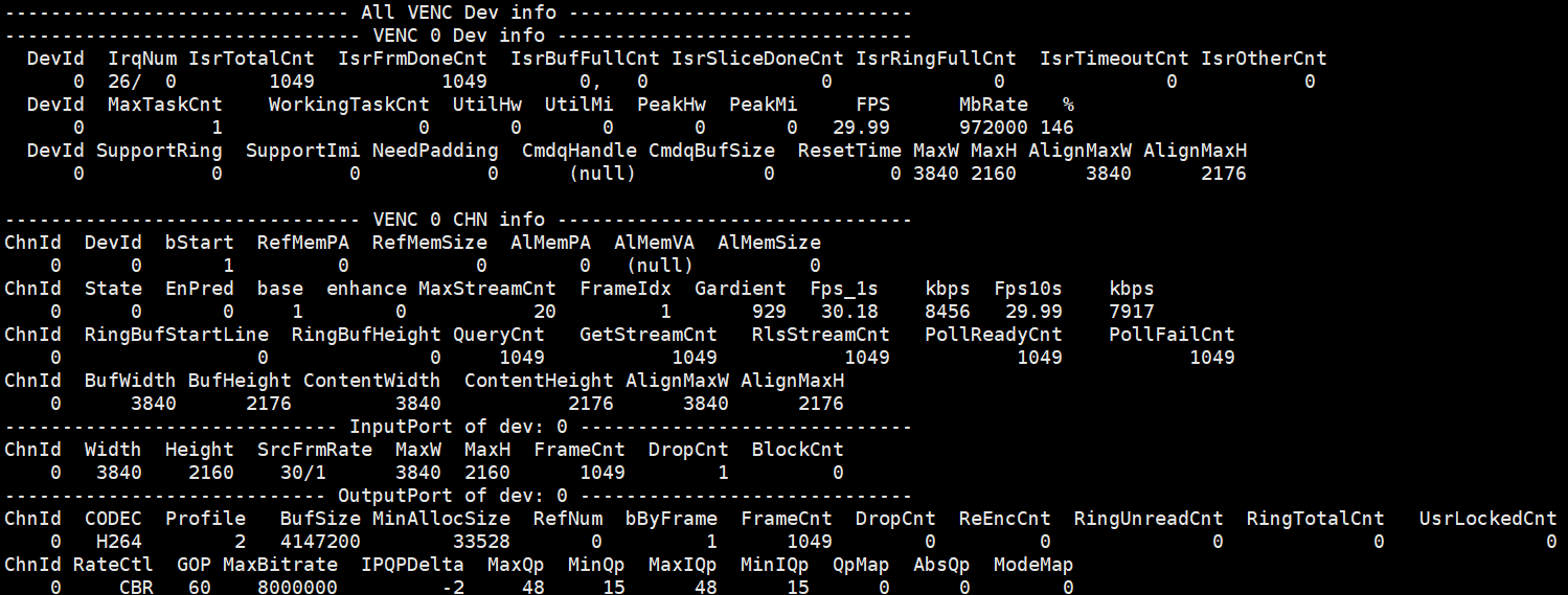 | 命令 | echo show all [Status] > /proc/mi_modules/mi_venc/mi_venc[DevID] |