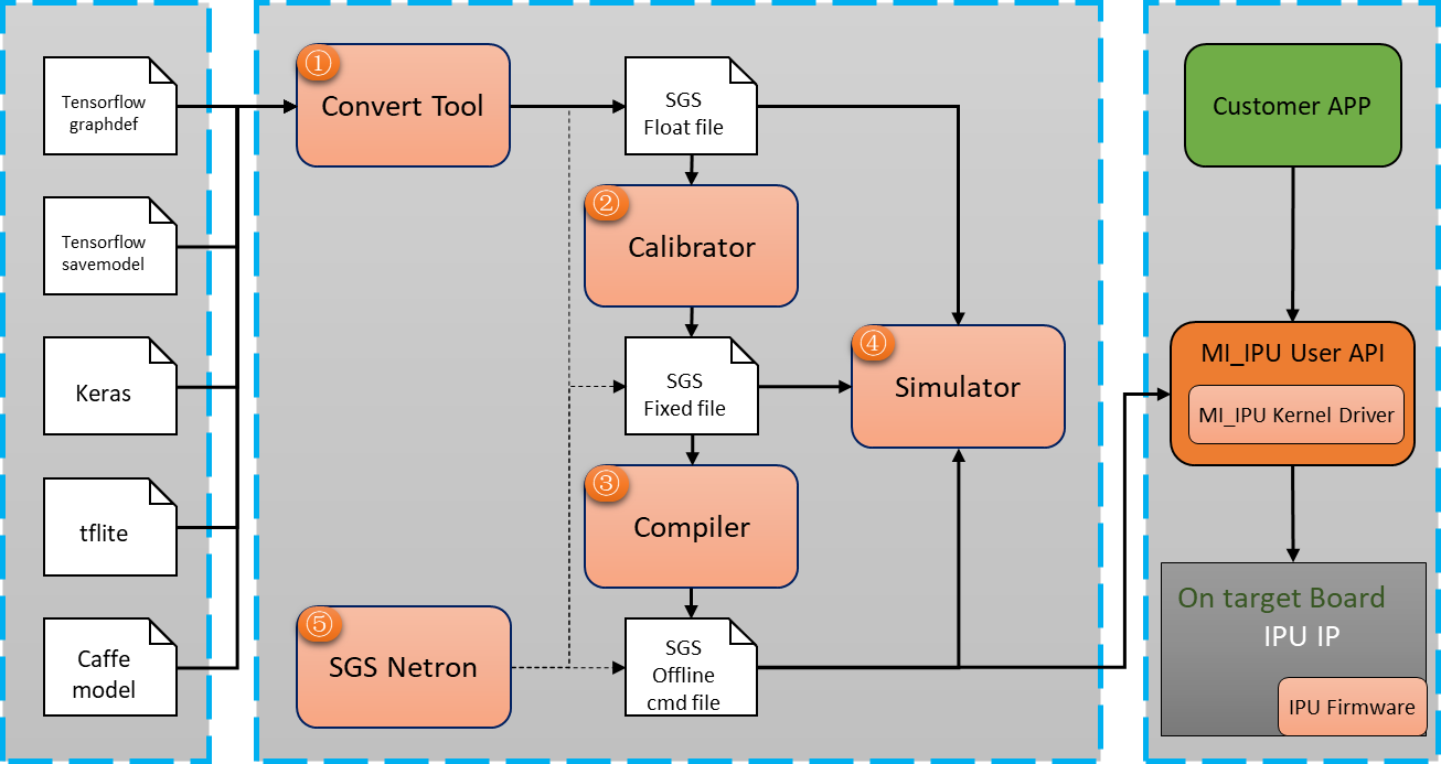 ① Convert Tool:将TensorFlow、Keras和Caffe框架训练的网络模型转换为SigmaStar浮点网络模型(SGS Float file);