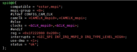 | SPI 0 | 1 | PAD_SPI0_CZ | PAD_SPI0_CK | PAD_SPI0_DI | PAD_SPI0_DO | /dev/spidev0.0 |
