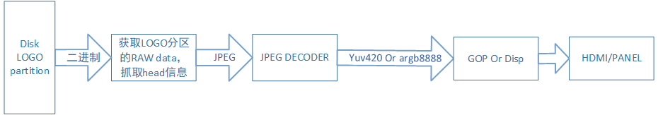 Grab screen parameters or HDMI/VGA display related information and original JPEG data from the fixed LOGO partition.
