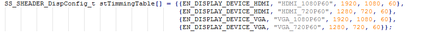 The display data is divided into two parts, one is screen parameters for panel display, the other is HDMI/VGA display output, these two attributes are mutually exclusive in use, once the user sets DISP_OUT_NAME as the screen parameter The name of the output display data is all screen parameter data. If the name starts with HDMI/VGA, only the parameter data of HDMI/VGA will be output, such as HDMI_1080P60.