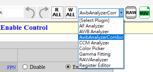点选API tool上方Select Plugin,选择Awb AnalyzerCombo开启调整工具接口。