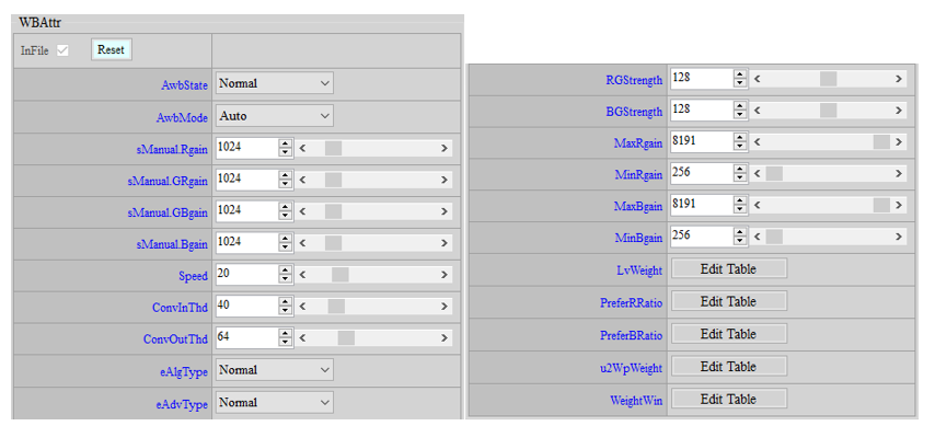 设定CalibrationInitialParameter.ini中[AWB]校正参数(参考16.5.2. 参数说明)。