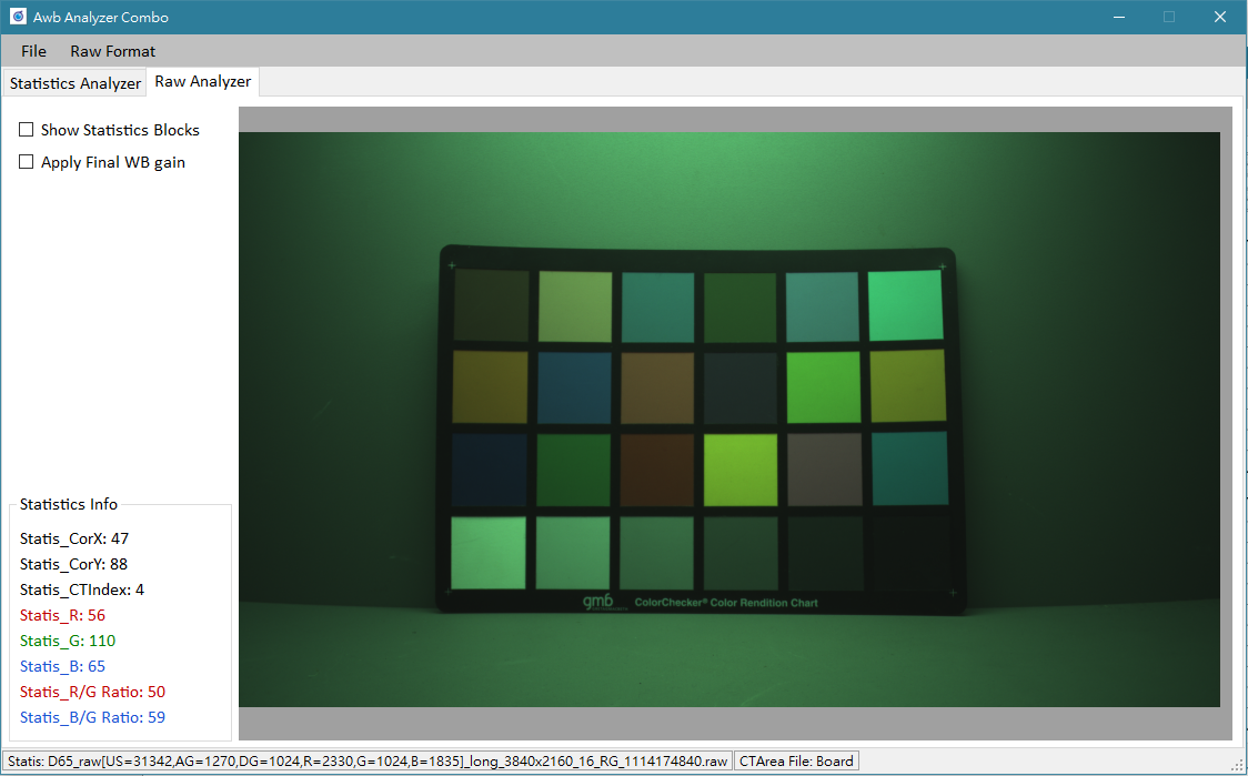 右上方会显示当下算出的RGain、BGain及色温(CT)。