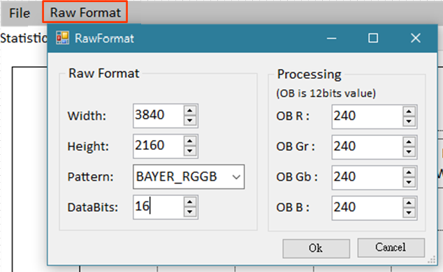 RawFormat:开启Raw Image用的格式,当选择Raw Image为统计值来源之前需要先来此设定格式。