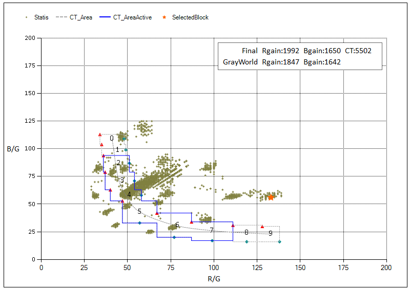分析多台机台AWB统计值落点,从中挑选出一台落点接近平均值的来当作golden sample。
