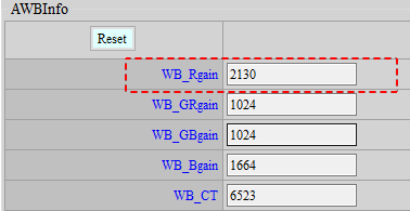CalibrationInitialParameter.ini中[AWB]校正参数(参考16.5.2. 参数说明)。-