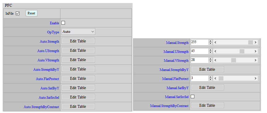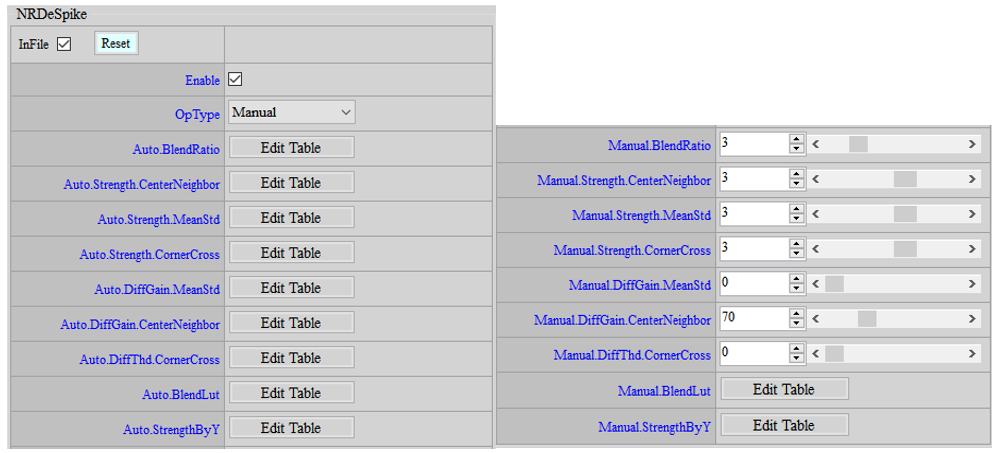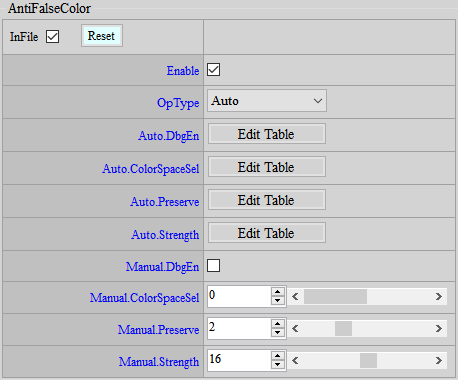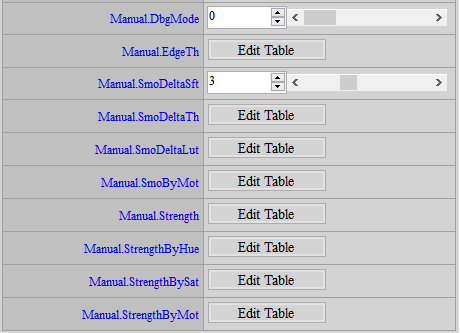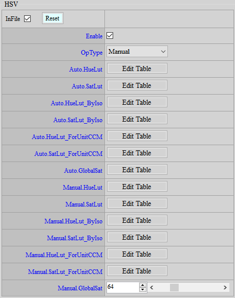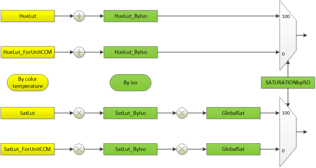 | HSV | 新增by iso功能 | N/A | s16HueLut_ByIso[24] u16SatLut_ByIso[24] |