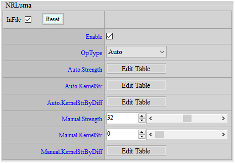 | NRLuma | 移除spatial filter 新增range filter相关参数 | u8GMaskSel u16SpfBlendLut[2] u8KernelStr u8KernelStrByDiff[32] | |