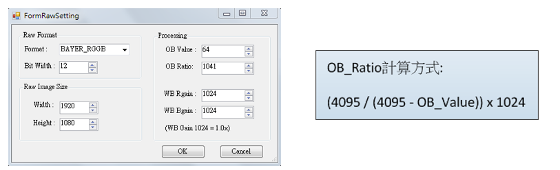 点选界面工具栏的Options,填入正确的raw information及OB(WB不需要设定),完成后点选OK。