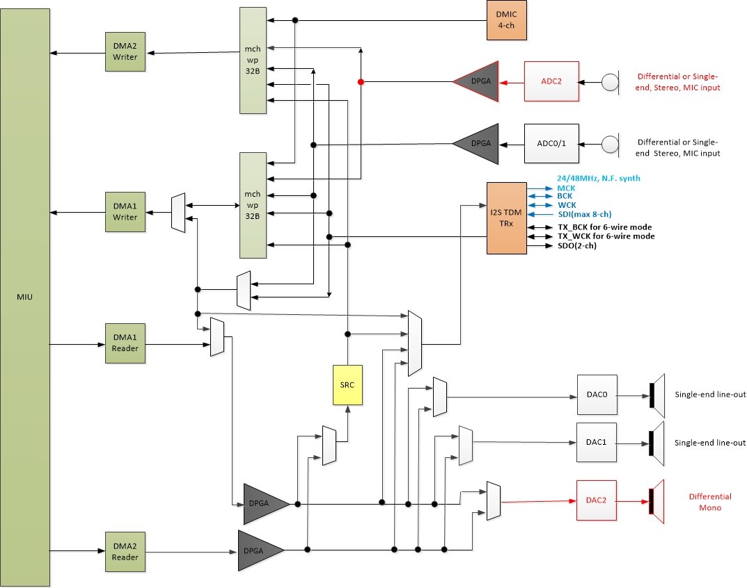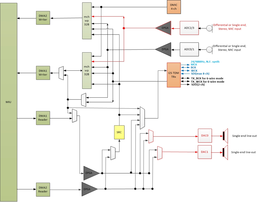 音频输入目前支持I2S主模式、I2S从模式、Tdm主模式、Tdm从模式,但芯片支持的工作模式不尽相同。