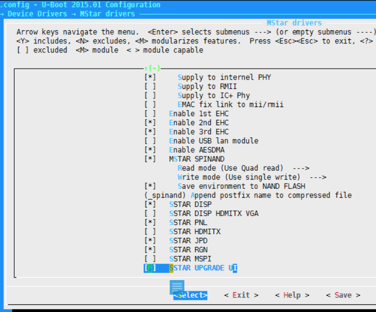 在uboot中需要打开 SSTAR UPGRADE UI,此命令依赖于SSTAR RGN 、SSTAR DISP。
