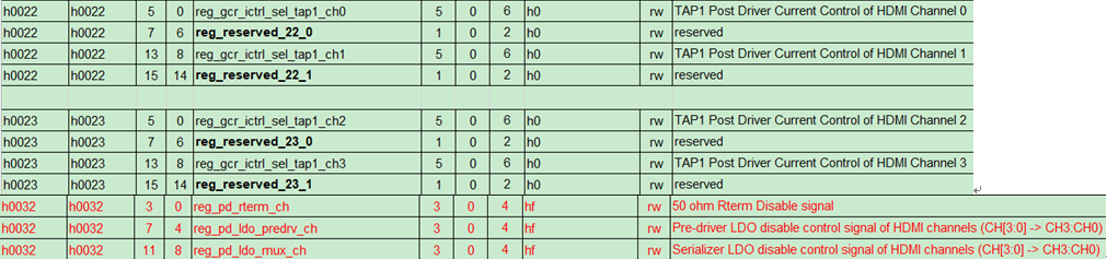 MI_HDMI_AnalogDrvCurrent_t CurInfo = {0x15, 0x14, 0x17, 0x16,0,0,0,0,0xf,0,0}; MI_HDMI_SetAnalogDrvCurrent(g_HdmiAttr.eHdmi, &CurInfo);