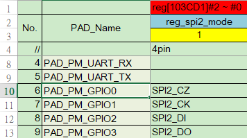 确定设的mode是否有生效。比如设置PAD_PM_GPIO0~3为spi2 mode1