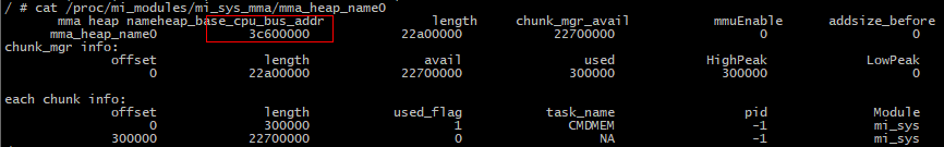 mma预留起始地址可以从正常启动环境proc信息看出;如果要reserved-memory,可以在heap_base_cpu_bus_addr前的地址开始预留。