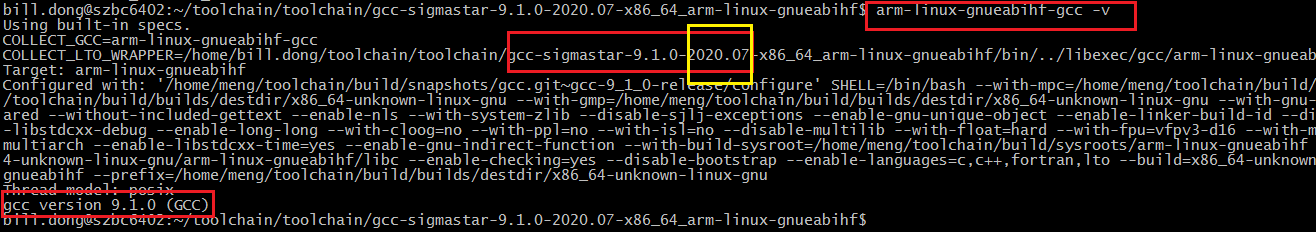 • 配置完成后,可以按照如下方式确认gcc版本是否已经切换到9.1.0版本。